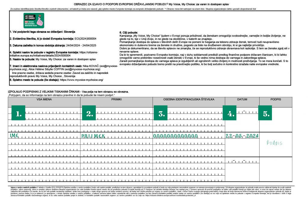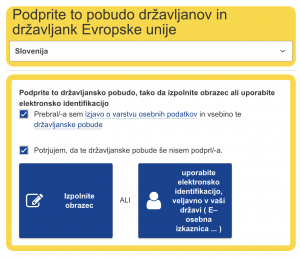 1. Pojdi na uradno stran Evropske komisije na tej povezavi. Za oddajo podpisa moraš navesti le ime, priimek in EMŠO številko. NE potrebuješ digitalne identitete!